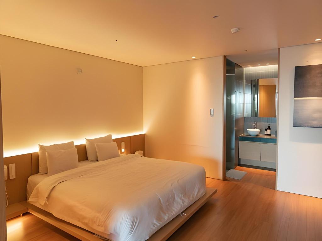 욕실엔 고급 어메니티와 제트스파 욕조가 마련되어 있어 반신욕과 함께 하루의 피로를 말끔히 풀 수 있다. 또한 침구는 호텔급 매트리스와 오리털 이불로 구성되어 있어 편안한 수면을 보장한다.