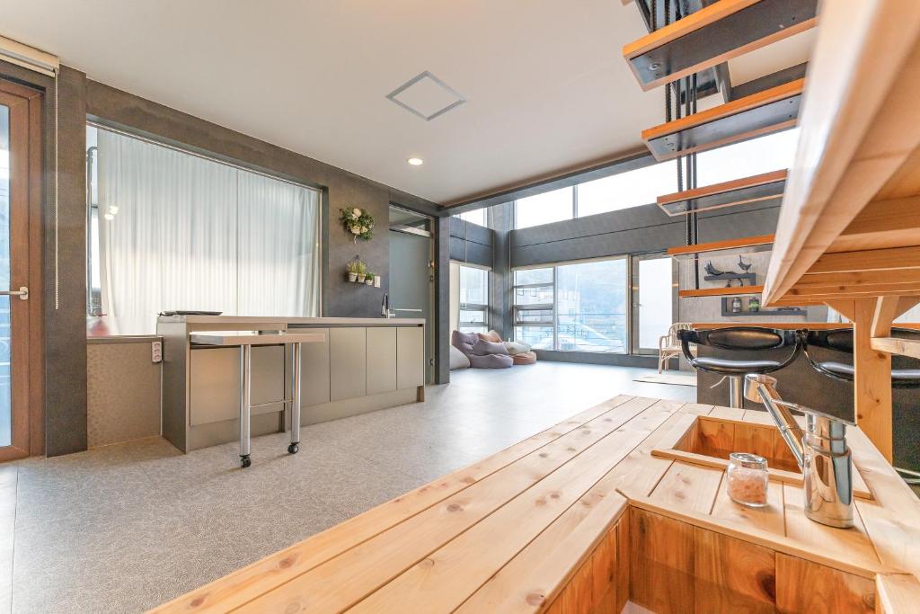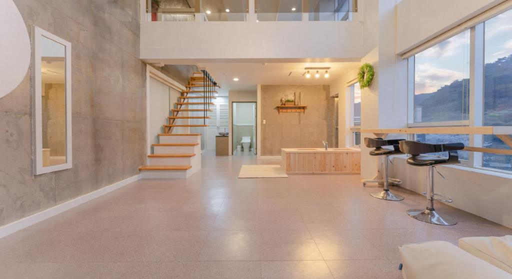 객실은 편안함과 모던함이 조화된 공간으로, 프라이빗한 휴식을 보장합니다. 각 객실에는 히노끼탕이 포함되어 있어 언제든 온천욕을 즐길 수 있으며, 넓은 창으로는 푸른 바다와 자연 풍광이 한눈에 들어옵니다. 아늑한 조명과 고급 침구가 더해져 숙면을 돕고, 여유로운 휴식 시간을 완성합니다.