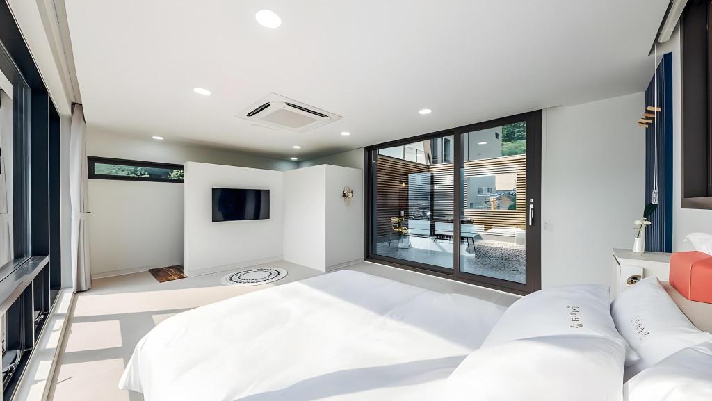 모던하면서도 따뜻한 톤으로 꾸며진 인테리어는 감각적이면서도 편안한 분위기를 자아냅니다. 숙소 내부에는 넓은 거실과 오픈형 주방, 침실이 분리돼 있어 장기 숙박이나 가족 여행에도 최적화돼 있습니다.